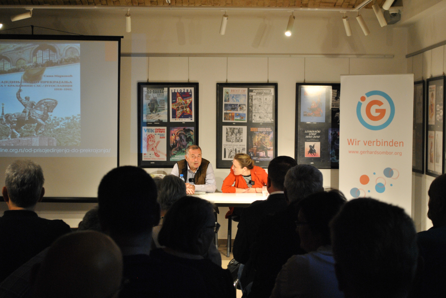 Predstavivši opšti istorijski kontekst međuratne epohe, prof. Marković je ukazao na istoriju međusobnih odnosa različitih naroda na prostoru nekadašnje Južne Ugarske/Vojvodine. Kao naročito važan fenomen on je istakao proces mađarizacije koje su sprovodile ugarske vlasti a koji je naročito osnažen u godinama pred Prvi svetski rat. Nakon raspada Habzburške monarhije i stvaranja Kraljevine SHS/Jugoslavije nacionalni odnosi u Vojvodini bili su obeleženi upravo odnosom prema nekadašnjoj monarhiji. U pomenutom kontekstu, predavač je analizirao i izgradnju nacionalnog identiteta među nemačkim stanovništvom u Vojvodini koje je upravo u međuratnom razdoblju izgradilo svoje kulturne, društvene, ekonomske i političke organizacije.