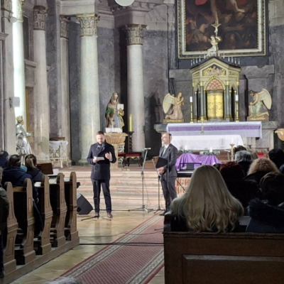 Na repertoaru su se našle i tradicionalne pesme na nemačkom jeziku, poput „Stille Nacht“ i „O Tannenbaum“, u izvođenju hora „Chor Lumina“. Na samom kraju programa, dečiji hor „Eho“ obradovao je publiku izvođenjem pesama „Alle Jahre wieder“ i „Stille Nacht“.